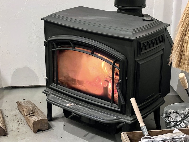 haku は化石燃料への依存を最小限に減らすため、白老の間伐材などを利用した薪ストーブを使っています。