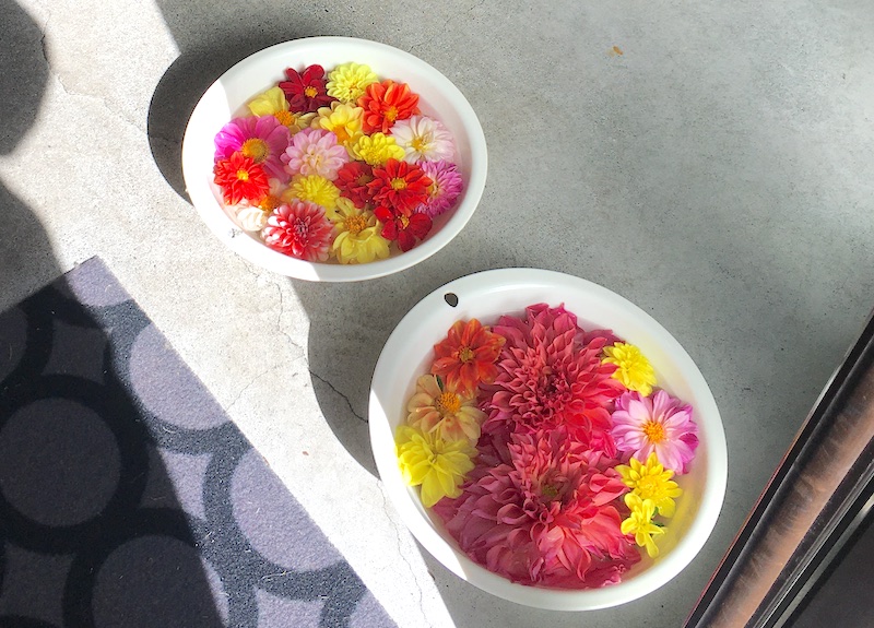 カレンデュラはお花の名前ですが、水に浮かべられた花びらが置かれていました。