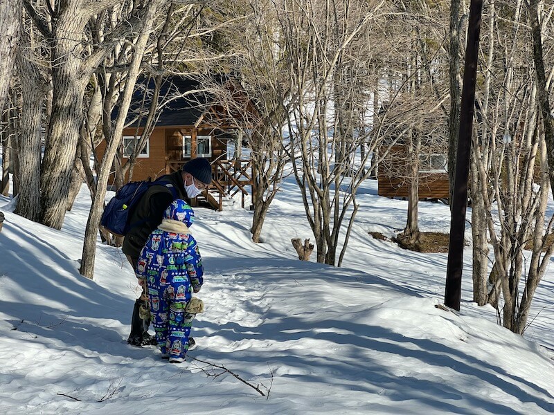 ここから、車で自然休養林の駐車場まで連れて行ってもらいます。