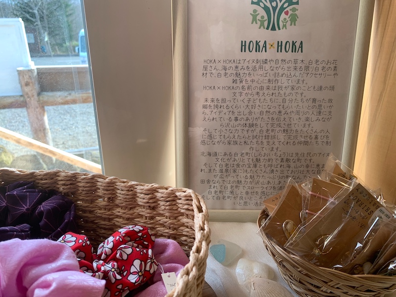また、HOKA x HOKA は、アイヌ刺繍や自然の草木、白老のお花屋さん、海の恵みを活かし