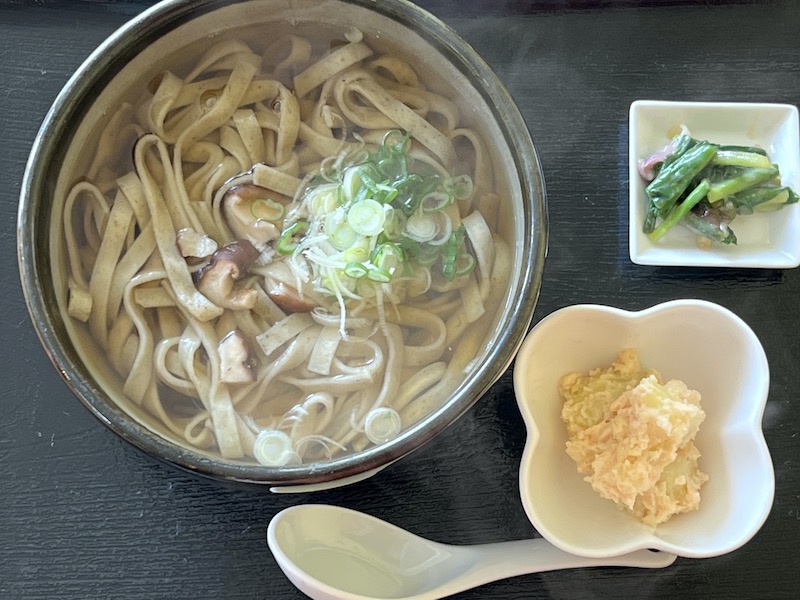 特上よもぎうどん。小鉢は、この日はギョウジャニンニクのぬたでした?