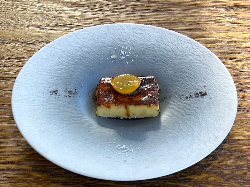 カタラーナはスペインのお菓子ですが、スパイスにキハダの実(シケㇾペ)を振りかけています。