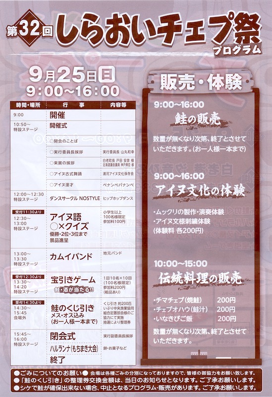 | 主催 | 白老チェプ祭実行委員会 |