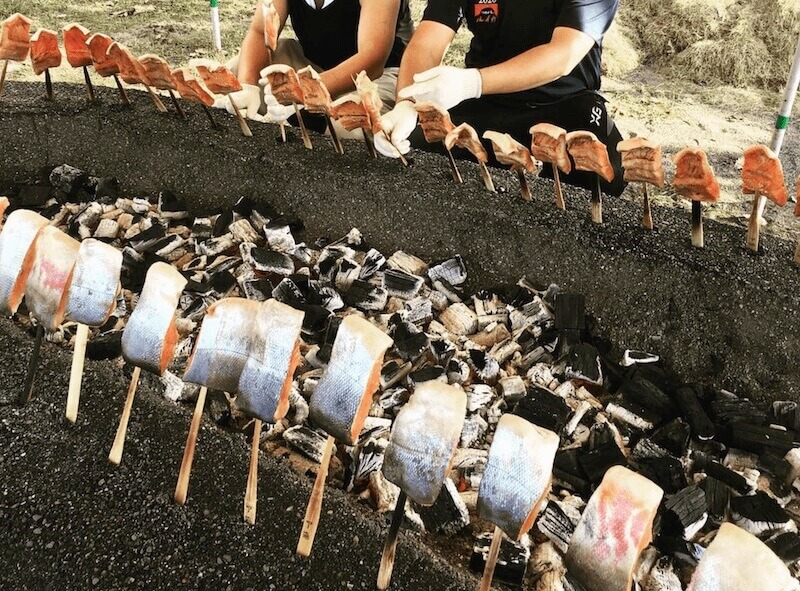 チマチェㇷ゚(焼き鮭)、チェㇷ゚オハウ(鮭汁)、いなきびご飯を販売しています。