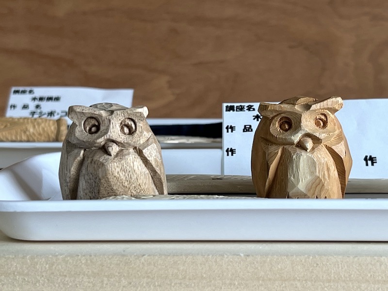 昨年から木彫を始めている受講生はミニフクロウを作りました。